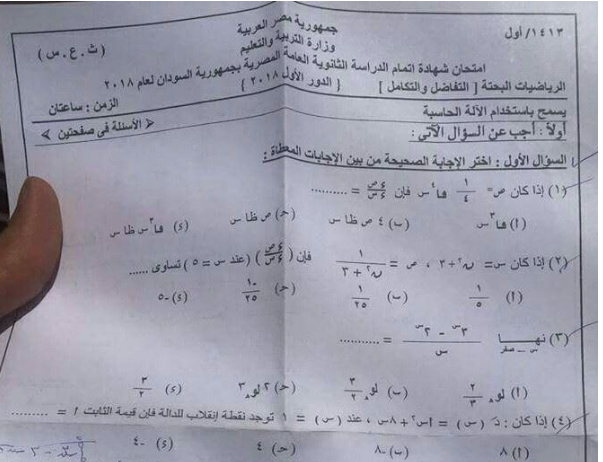 امتحان التفاضل و التكامل للثالث الثانوى للسودان لعام 2018 كامل