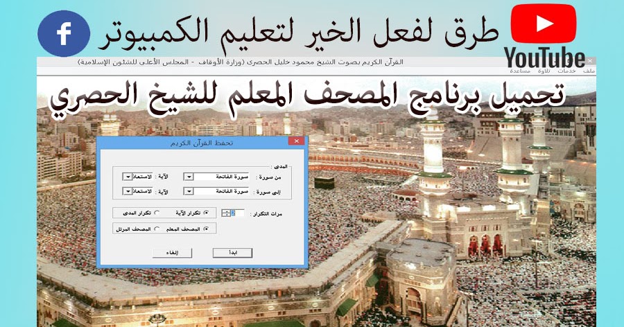 برنامج المصحف المعلم والمرتل للشيخ الحصري ورابط تحميل مباشر له Youtube