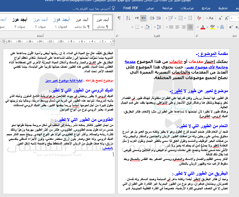موضوع تعبير عن طيور لا تطير بالمقدمة والعناصر والخاتمة بملف ورد لتعبير طيور ولكن لا تحلق