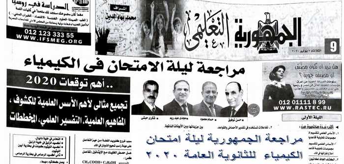 مراجعة جريدة الجمهورية في الكيمياء للصف الثالث الثانوى 2019 بنك لأهم الأسئلة المتوقعة فى الامتحان