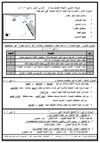 حل تدريبات الكتاب المدرسى للصف السادس الابتدائى الترم الثانى دراسات