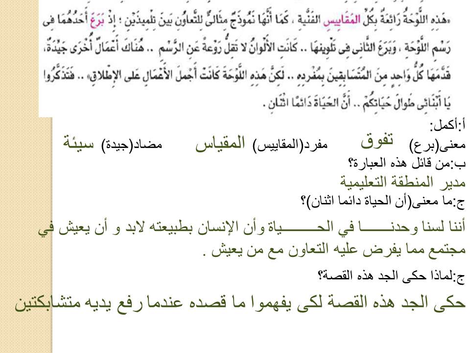 درس الحياة دائما اثنان للصف السادس الابتدائى