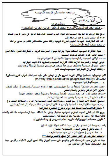 مذكرة سؤال و جواب فى الجغرافيا السياسية للصف الثالث الثانوى 2016 وورد
