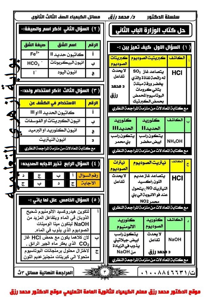 جميع مسائل الكيمياء ثانوية عامة 2016 د محمد رزق