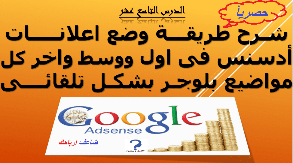 شرح طريقة وضع اعلانات جوجل ادسنس فى اول ووسط واخر كل مواضيع بلوجر بشكل تلقائى