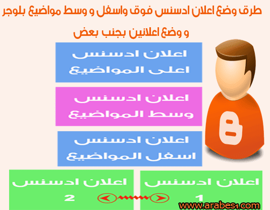 الدرس 48 طرق وضع اعلان ادسنس فوق واسفل و وسط مواضيع بلوجر و وضع اعلانين بجنب بعض