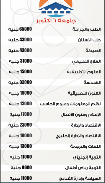مصاريف جامعة 6 أكتوبر 2019 2020 الشرقية توداي