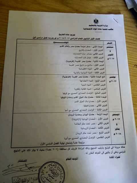 توزيع منهج التاريخ لاولى ثانوى ترم اول منهج جديد 2018 كامل اعرفه الان