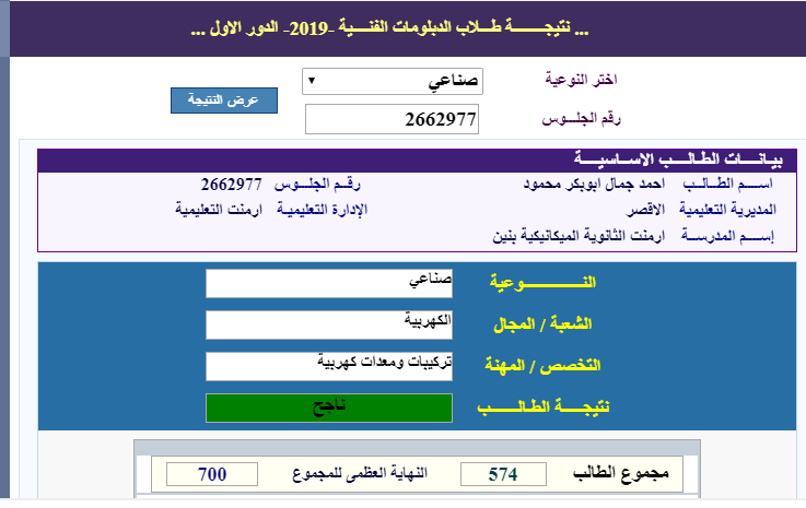 رابط نتيجة دبلوم الفنى الصناعى 2019 الاستعلام عن النتيجة برقم الجلوس الان