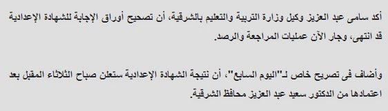 نتيجة الشهادة الاعدادية محافظة الشرقية 2014
